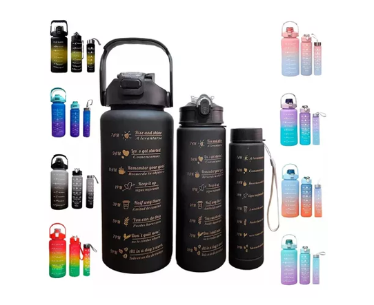 kit Garrafas Água Galão 2l 900ml 300ml Squeeze Academia Escola