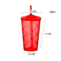 Copo Acrílico Vermelho com Tampa e Canudo
