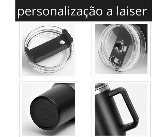 Copo Termico Com Tampa e Canudo Personalizado Preto