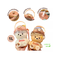 Garrafa De Água Urso 1l Transparente Com Alça Infantil SMILE