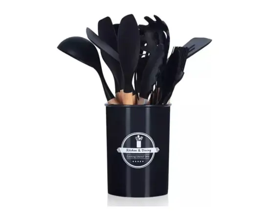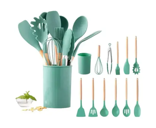 Jogo Utensilios de Cozinha de Silicone Madeira 12 Pecas