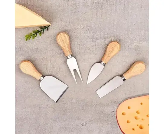 Kit Para Queijo Petisco 4 Peças De Aço Inox E Madeira